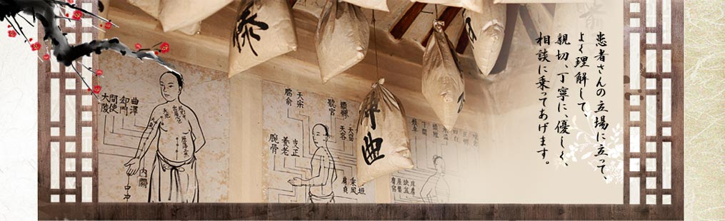 中国鍼灸院に来られた患者さんに対して、西洋医学はもちろん、漢方医学を生かしてあらゆる角度から患者さんの健康状態を検索し、それに応じて治療を進めていきます。